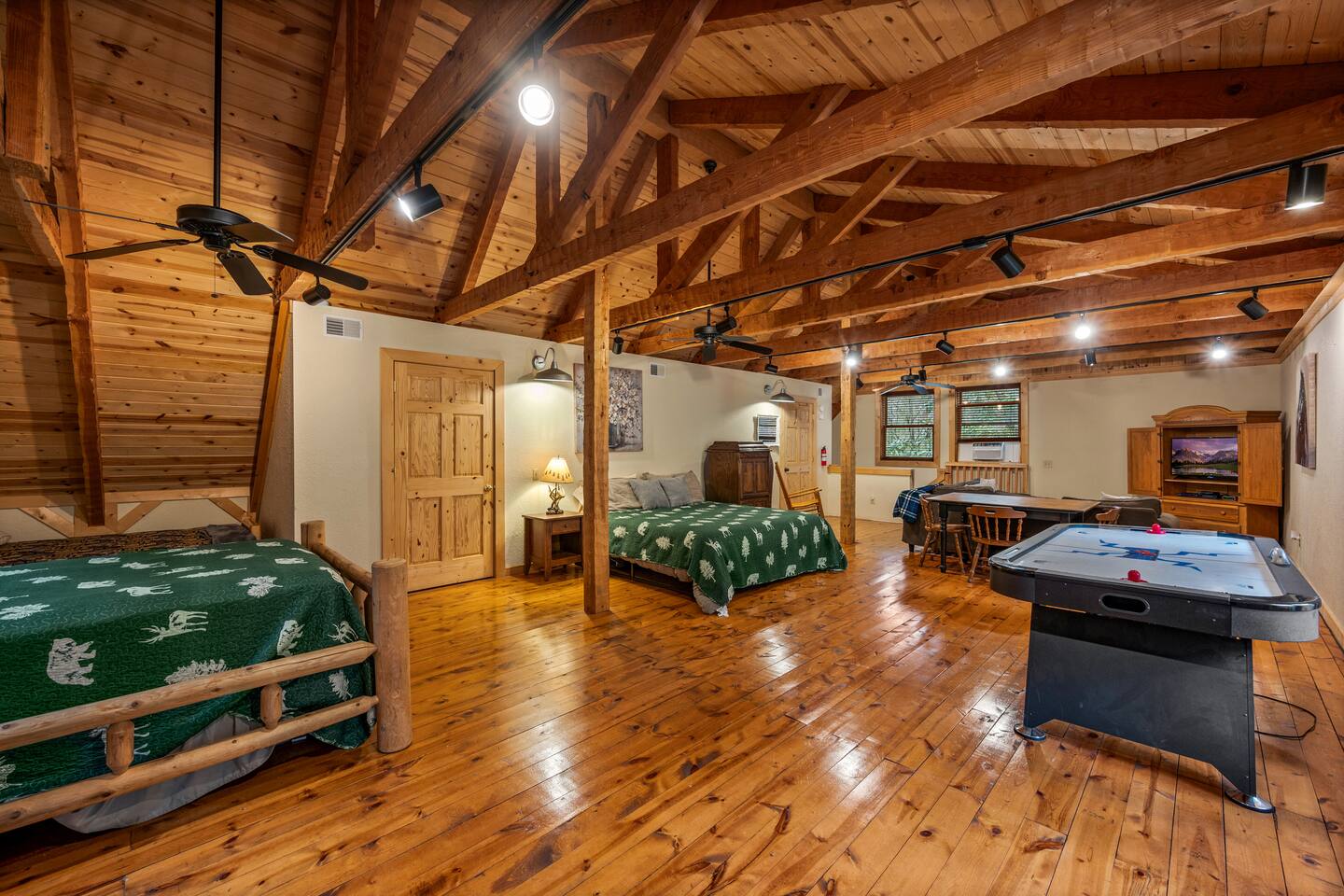 Why You'll Love Falling Leaf Retreat โ Full Property Rental ๐๏ธ 3 Acres | ๐ 2 Homes: Cabin + Studio Barn ๐ณ 2 Kitchens | ๐ฅ 2 Fire Pits | ๐ Easy Access โ No Steep Roads ๐งโโ๏ธ Sauna | ๐ฆ Hot Tub | ๐ชต Wood-Burning Fireplace ๐ Air Hockey | ๐น๏ธ Foosball | ๐ฒ Giant Connect 4 ๐บ Smart TVs | ๐ค Alexa | ๐ก Starlink Wi-Fi (100 Mbps) ๐จโ๐ฉโ๐ง Kid-Friendly | ๐ณ Huge Flat Yard | โฐ๏ธ Bluff Mountain Views | ๐ชต Real Log Construction ๐ฅ Sleeps 14 โ Perfect for Families, Friends & Multi-Gen Trips